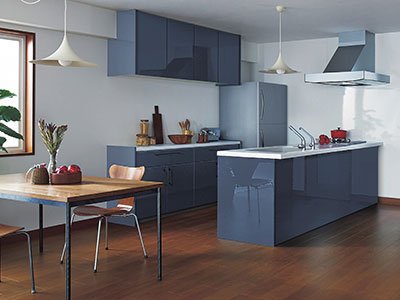 低価格帯でありながら機能的。上下2段のフロアキャビネットは乱雑になりがちな調理器具等をスッキリ収納。