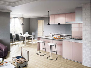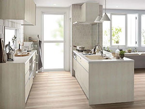 様々なインテリアにもマッチするシンプルなデザイン。オプションで自分流にアレンジしてご自分のライフスタイルにぴったりのキッチンが出来上がります。