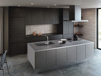 クラスキッチンのカウンターは選べる25柄。 カウンターの色や柄で、キッチンの印象がガラッと変わります。 高級感あふれる人造大理石や、熱や傷に強く美しいステンレス等、お好みの質感やカラーを選択してコーディネート。素敵なキッチンを作り上げます。