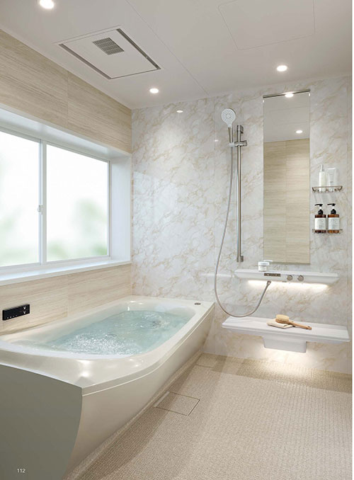 寒い日の入浴にも快適にバスタイムをお過ごし頂ける暖房換気扇を標準搭載しています。一気に浴室を暖めて快適なバスタイムを。